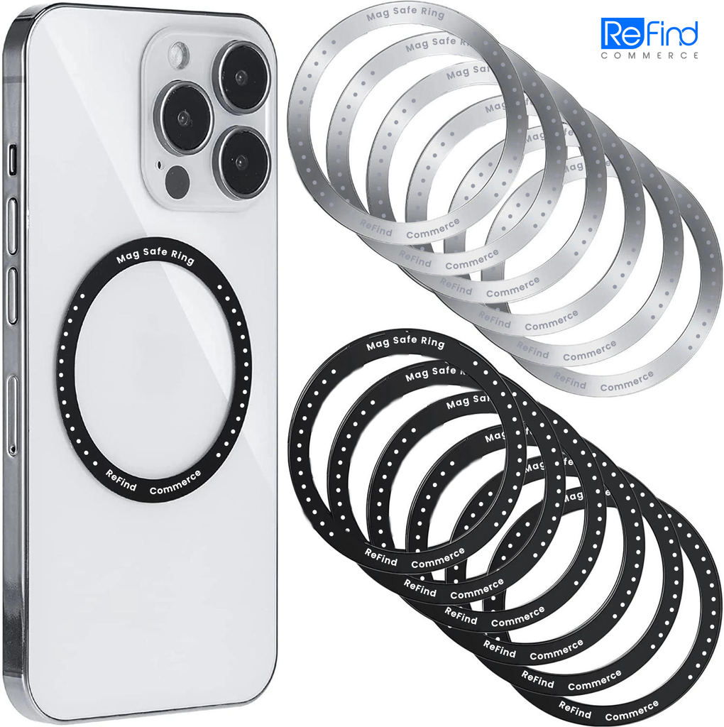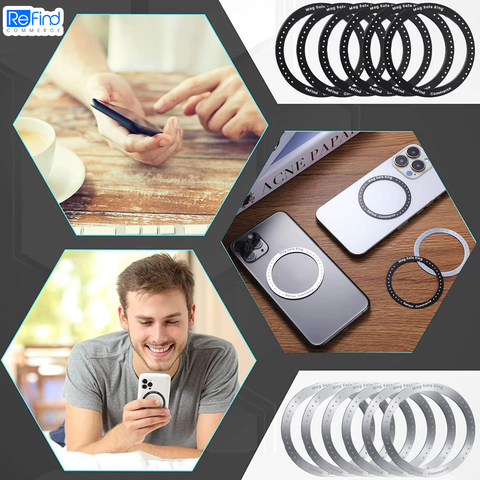 You can chose either 6pcs black adhesive metal ring or 6pcs chrome silver phone ring depending on your colour preference. Our 6pcs magsafe metal ring allows you to have a halo ring magnet on all of your devices. The magnetic ring phone high quality and sleek design really does set it set apart from its rivals. This universal magnetic ring is the perfect magnetic ring sticker for you as it has one of the strongest mag safe ring magnetic plate protecting you from the loss of your magsafe wallet, magsafe pop socket, magsafe charger, magsafe sticker, wireless charger, magsafe battery, magsafe accessories, wireless charger iphone.