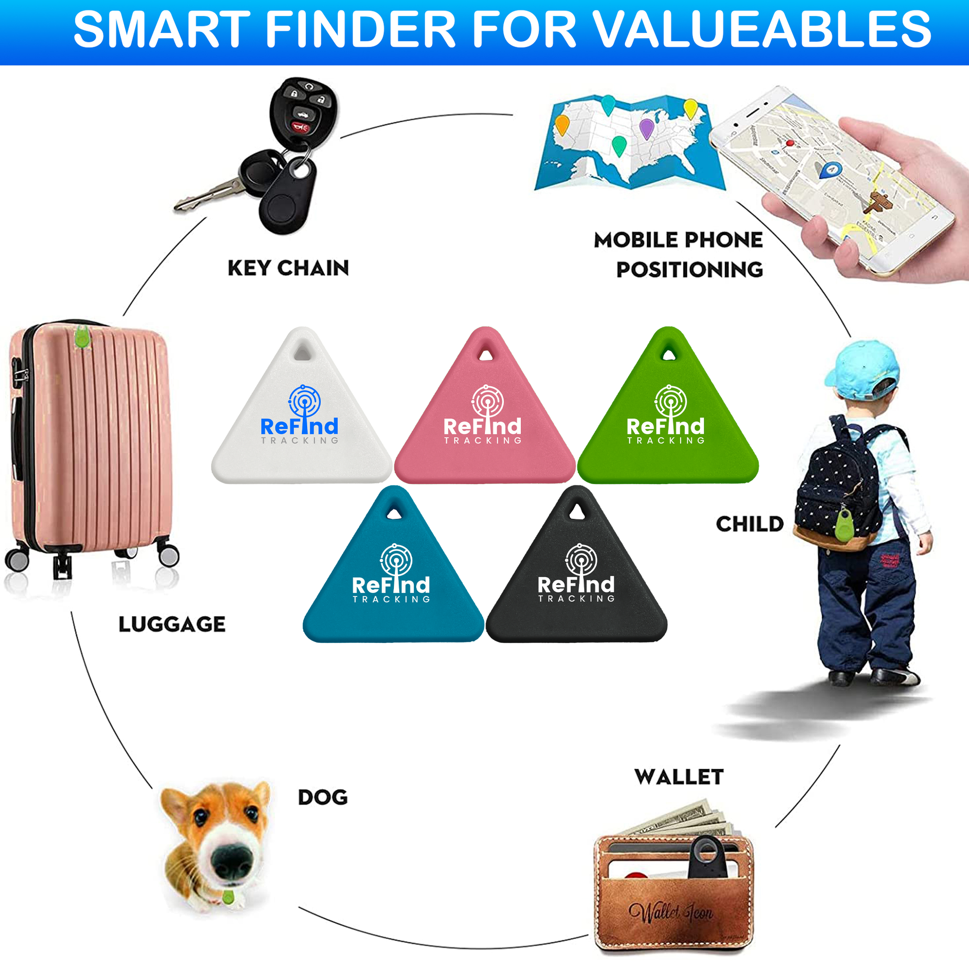 The ReFind R3 airtag tracker has numerous functionalities: Dog tracker & Cat tracker, Wallet tracker, suitcase tracker, key tracker & tile tracker. Attachable to keyring, collar, luggage loop and more