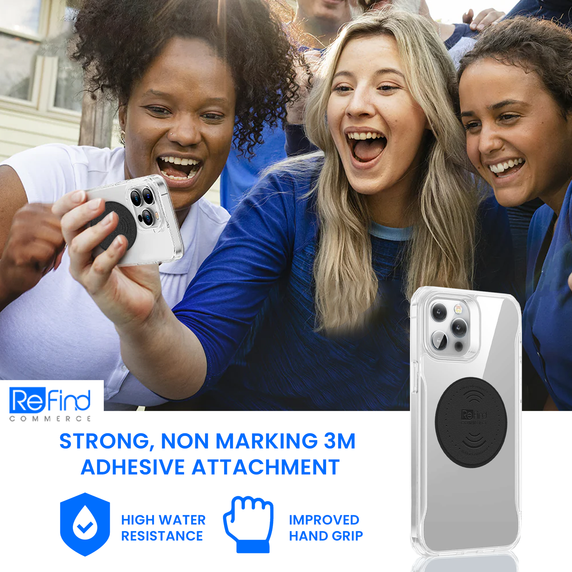 The ReFind Mag-Safe Pro Ring not only improves the strength of your MagSafe connection but also provides a better grip on your device. It ensures that your phone stays securely in your hand, reducing the risk of drops and accidental damage. Additionally, each order includes: